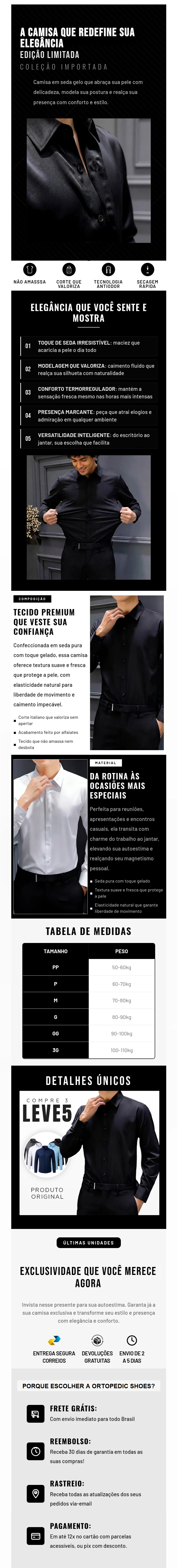 [Leve 5 Pague 3] Camisa Masculina Luxer em Seda Gelo e Manga Longa